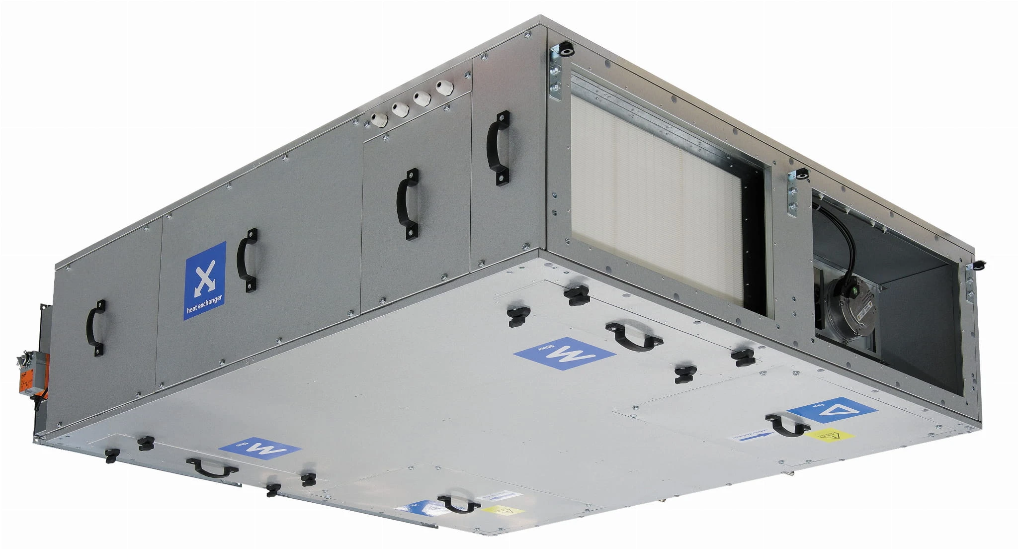 Centrala wentylacyjna z wymiennikiem przeciwprądowym, podwieszana, strona prawa, silniki EC, automatyka A31