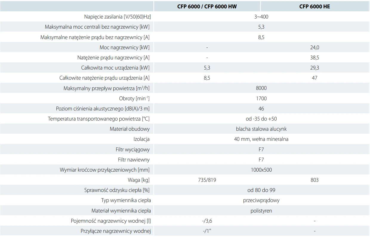 CFP HE modele są wyposażone w nagrzewnicę elektryczną wtórną.