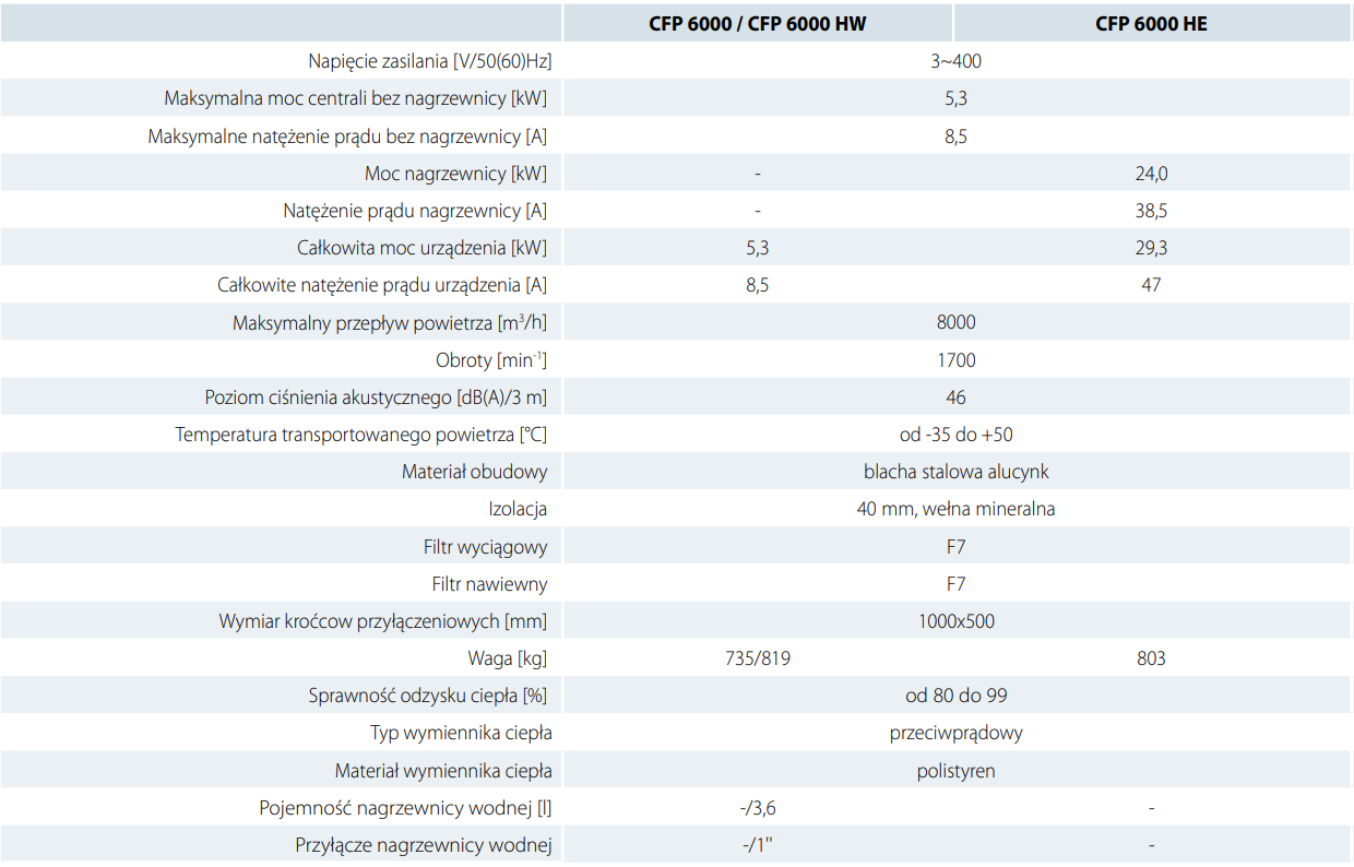 CFP modele bez wbudowanej nagrzewnicy.