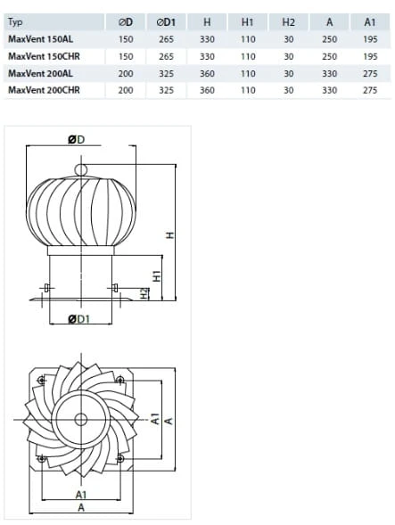 Nasada kominowa MaxVent 150CHR- DARMOWA WYSYŁKA!